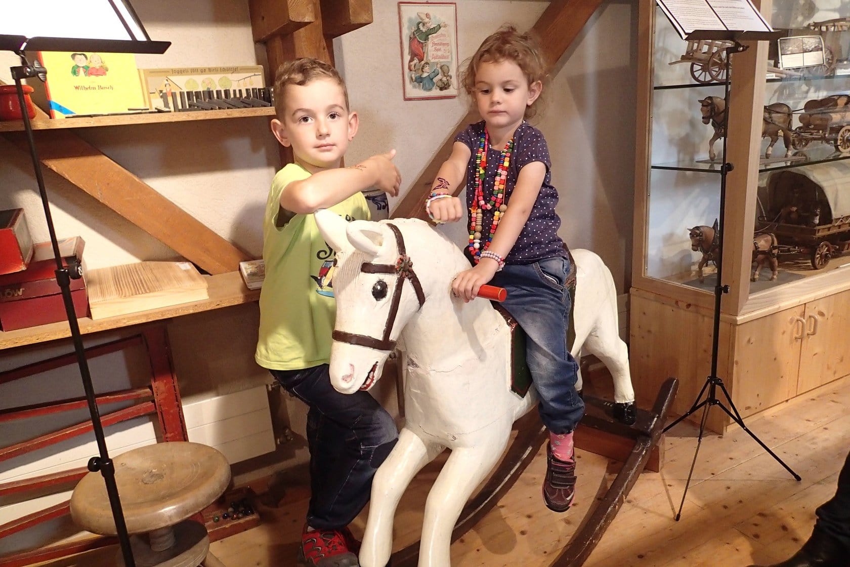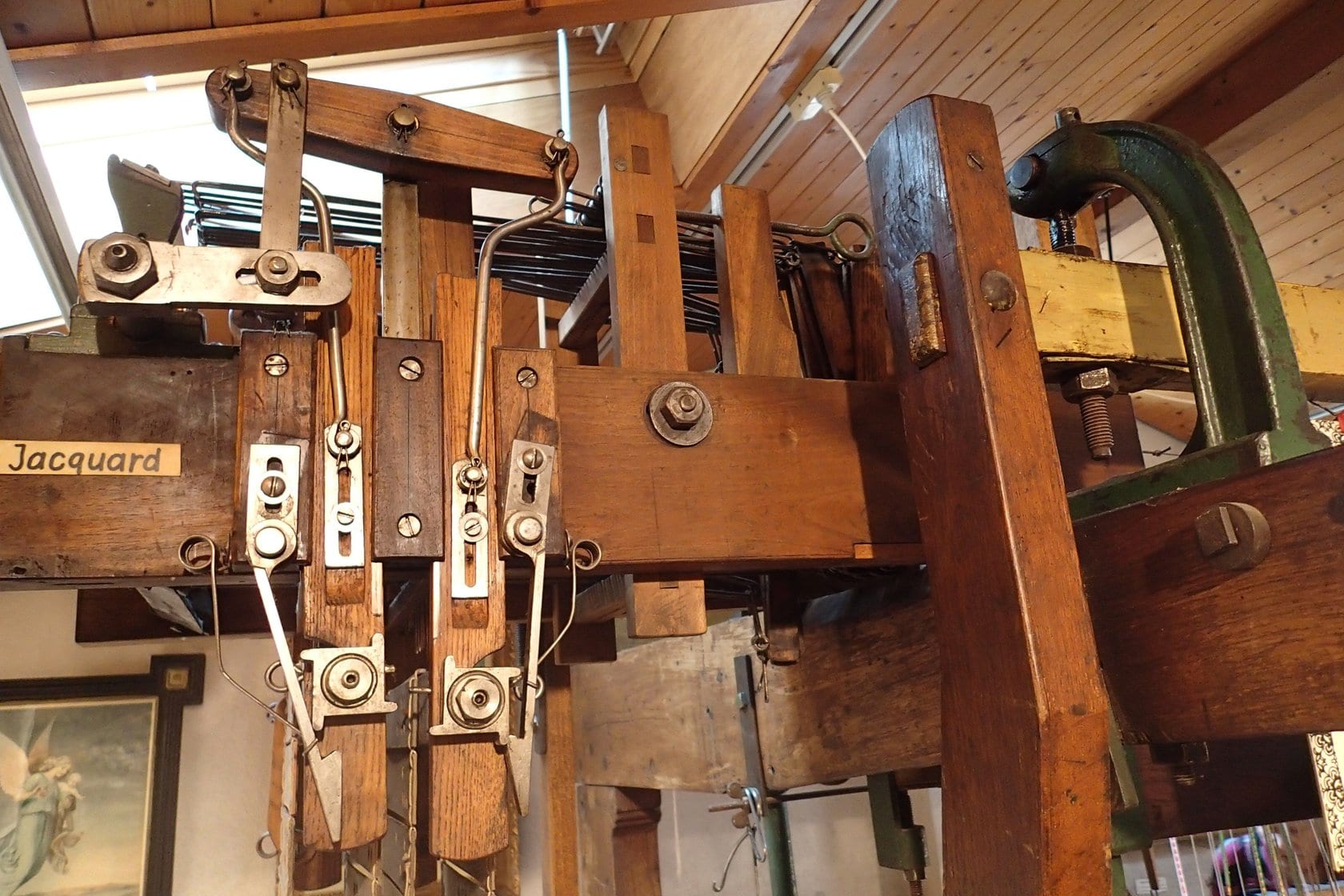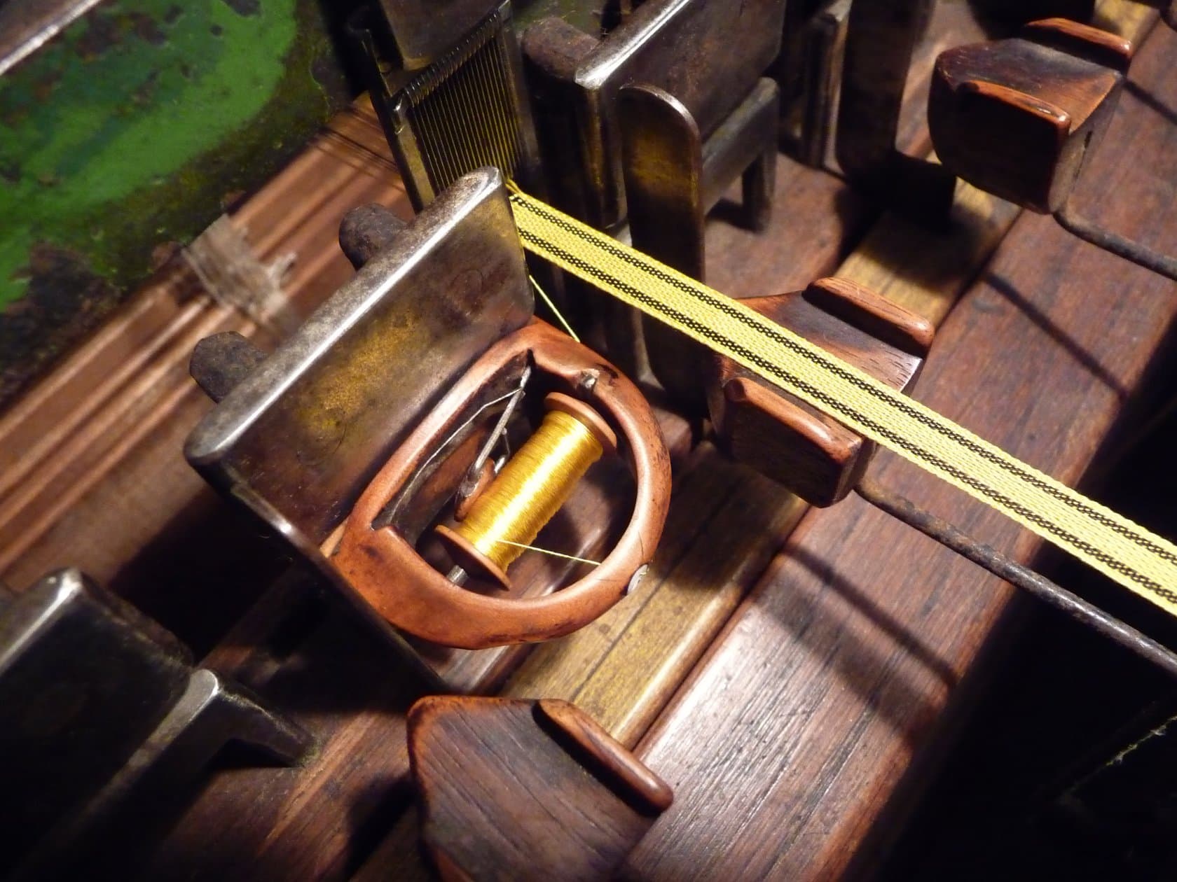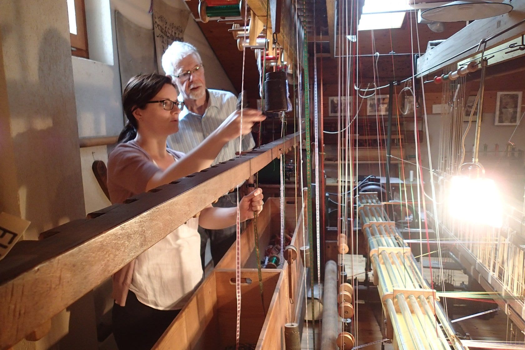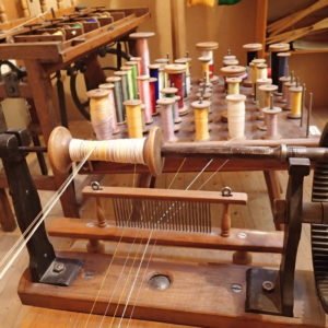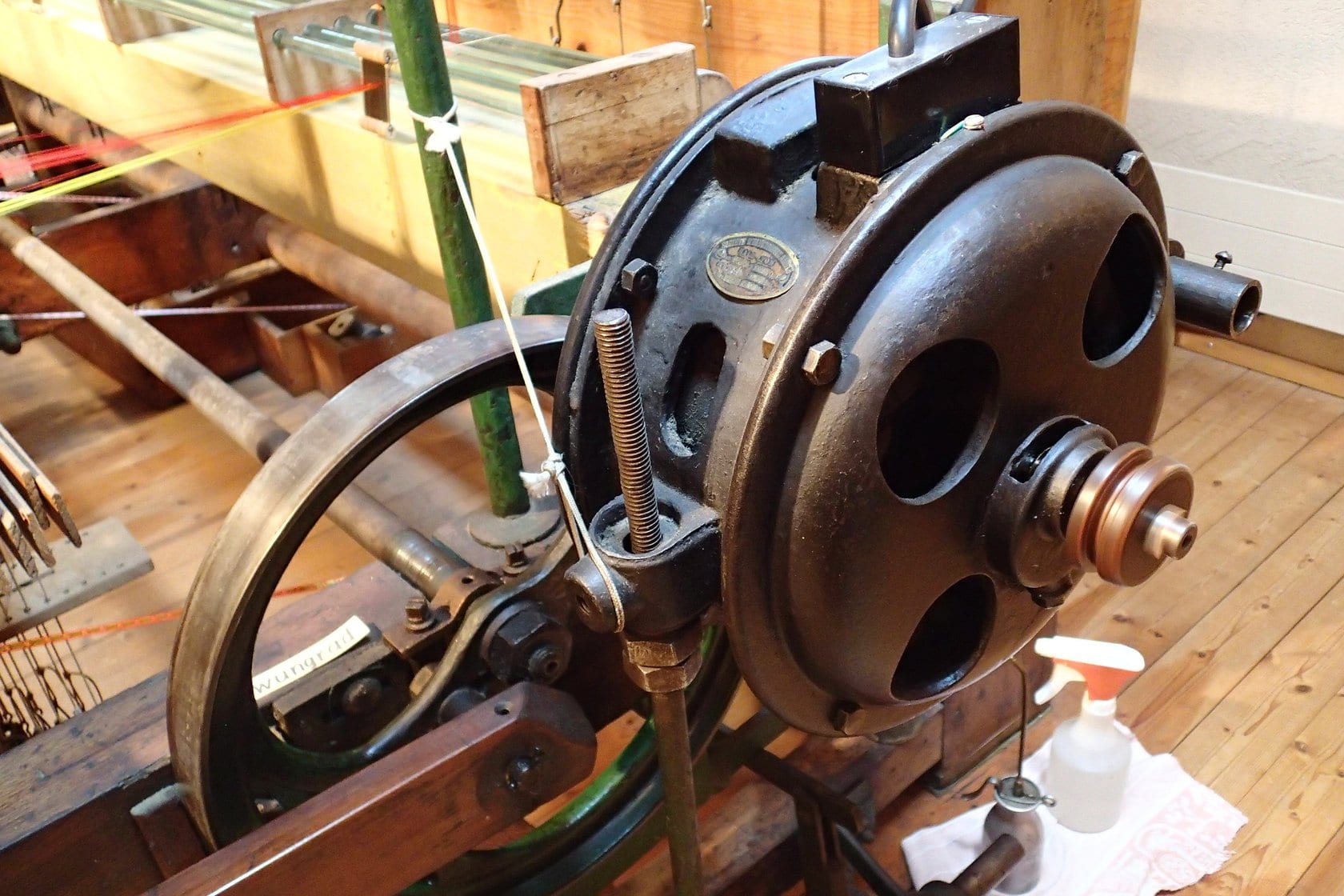 Bilder Einblick ins Museum Schulhaus Eien Webstuhl Elektromotor Spüeli Kinderspiele Materiallager Düüchel Jacquard Kuhgespann Amboss Farbmuster Bändel
